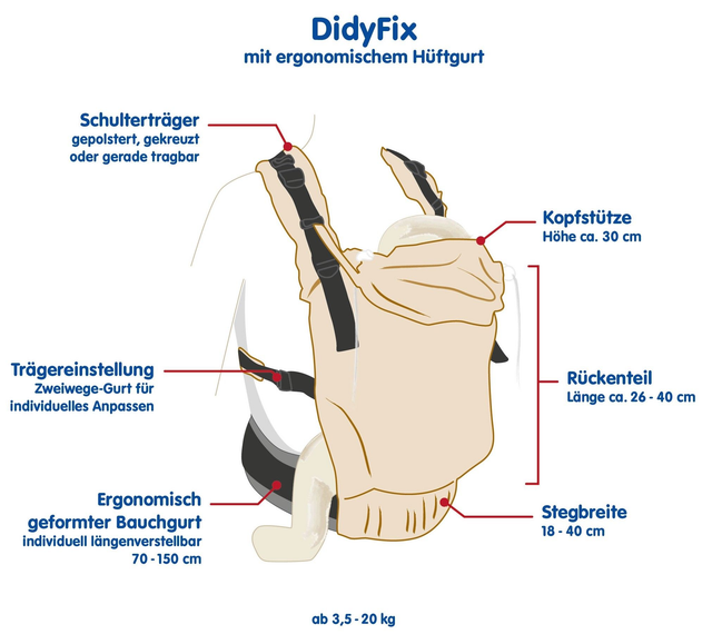 • Ab Geburt (ca. 3,5 kg) bis ins Kleinkindalter nutzbar
