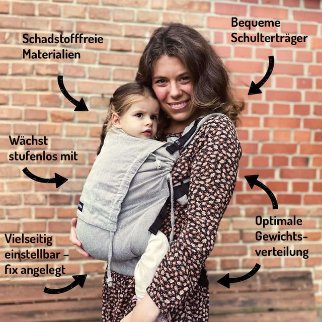 Die DidyFix Toddler ist die Weiterentwicklung der beliebten DidyFix, speziell für größere Babys und Kleinkinder. Sie kombiniert die Vorteile des bewährten Tragetuchstoffs mit der einfachen Handhabung einer Full-Buckle-Trage – ideal für aktive Familien, die auch nach der Babyzeit Nähe und Flexibilität genießen möchten.